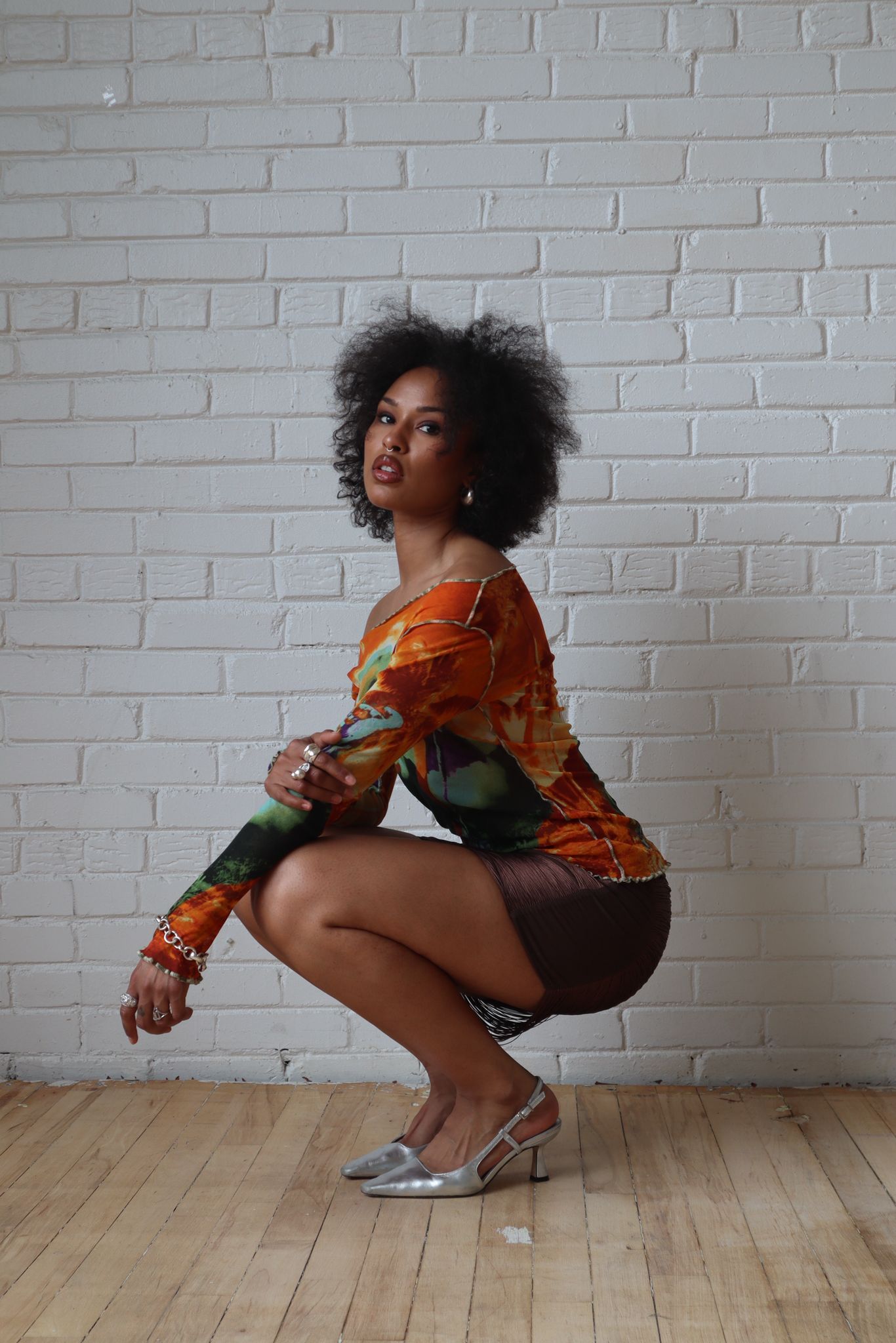 From the Spring/Summer 2000 Jean Paul Gaultier collection, this vintage top is crafted in sheer mesh with a multicolored abstract floral print. It features a fitted silhouette, long sleeves with thumbholes, and an off-the-shoulder neckline with raw-edge finishing.
